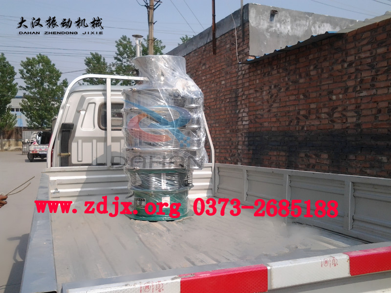 以下是這臺面粉振動篩的外形圖以及發貨現場